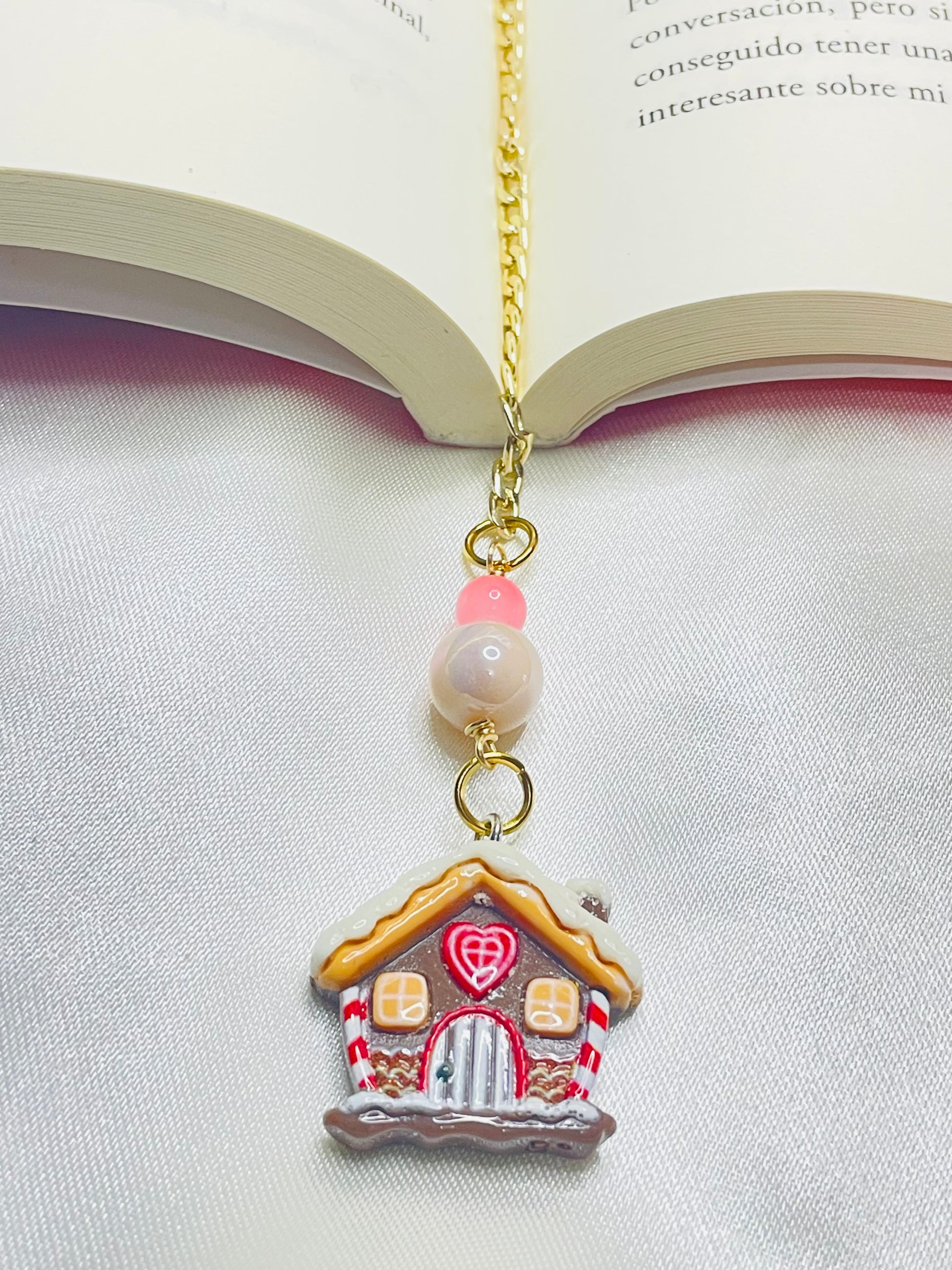• Charm principal: Casita de jengibre en resina, con detalles en colores pastel