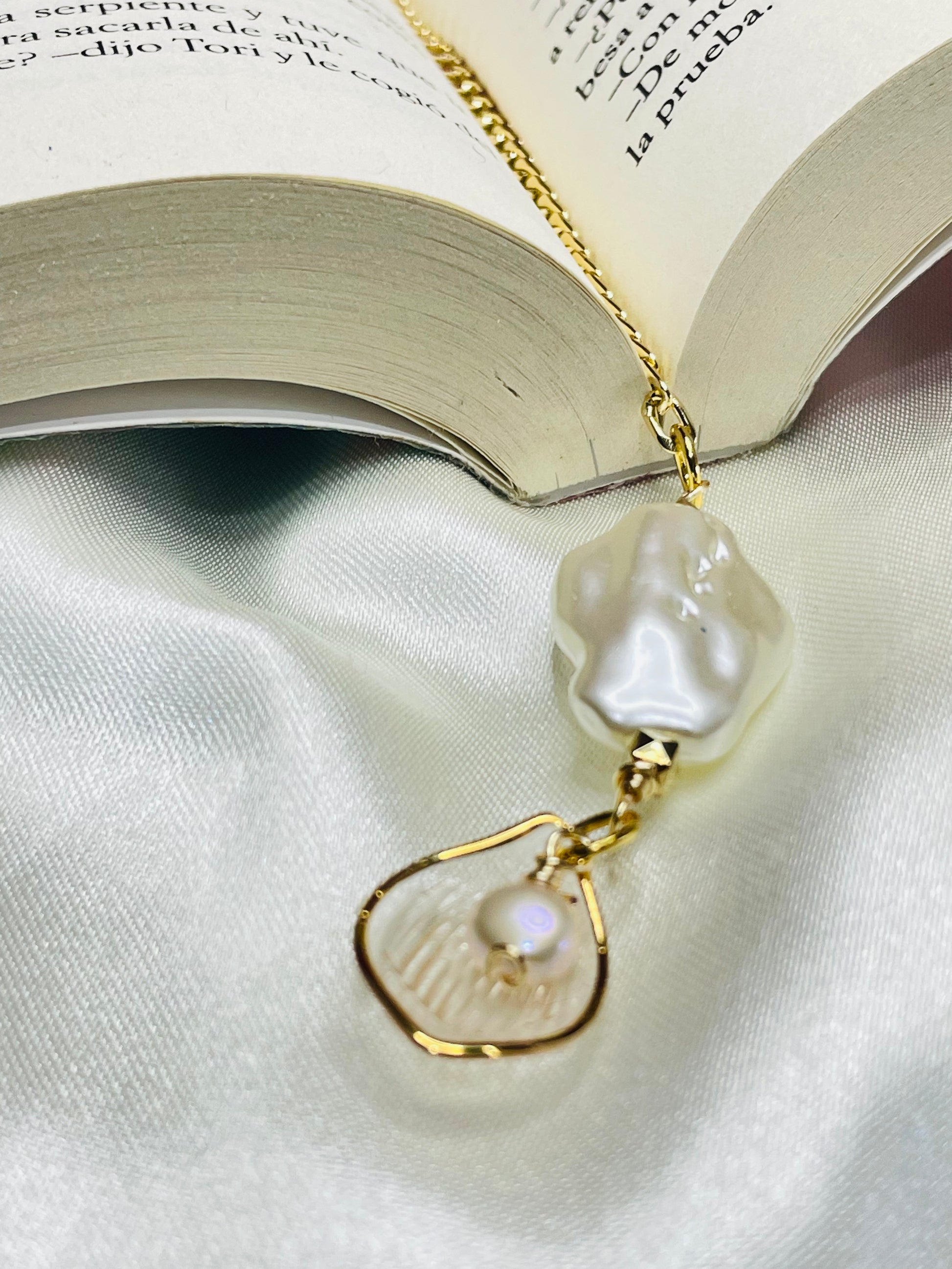En el otro extremo incluye detalles en resina y una perla de agua dulce, alambrada cuidadosamente para aportar un acabado fino y especial. La cadena de aluminio de 10 pulgadas permite que se adapte cómodamente a diferentes tamaños de libros, manteniendo su funcionalidad sin perder el estilo.